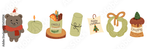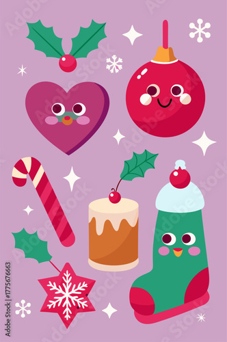 Забавный набор векторных символов горячего зимнего напитка. Изолированная иллюстрация горячего шоколада, кофе, какао со взбитыми сливками и зефиром, глинтвейна. Различные сезонные сладкие коктейли