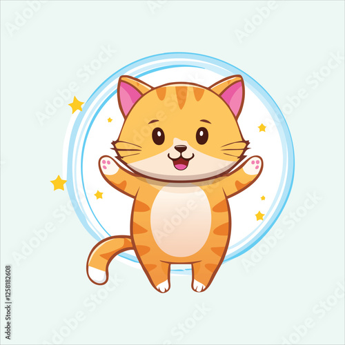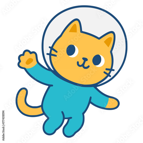 Забавный котенок-космонавт, векторный мультяшный космический персонаж. Кот, летящий в шлеме астронавта, выделенный на белом фоне. Симпатичное животное-космонавт
