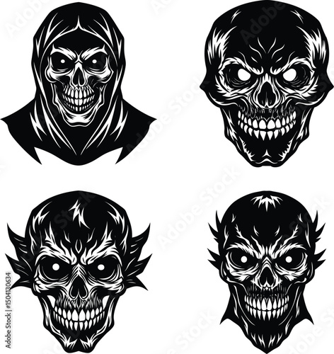 Забавный музыкальный набор обезьян, векторная рисованная иллюстрация, изолированная на белом фоне. Улыбающиеся обезьяны в наушниках и солнцезащитных очках.