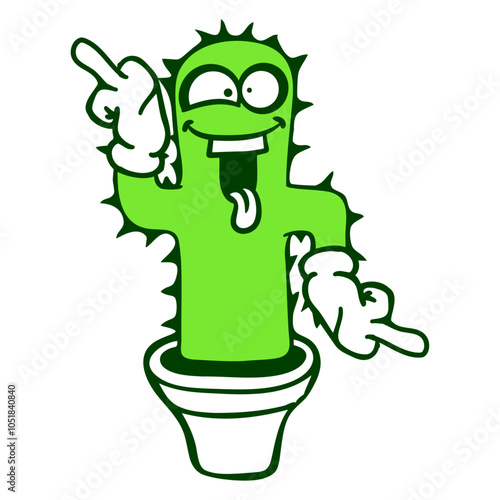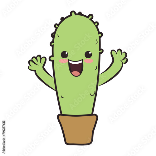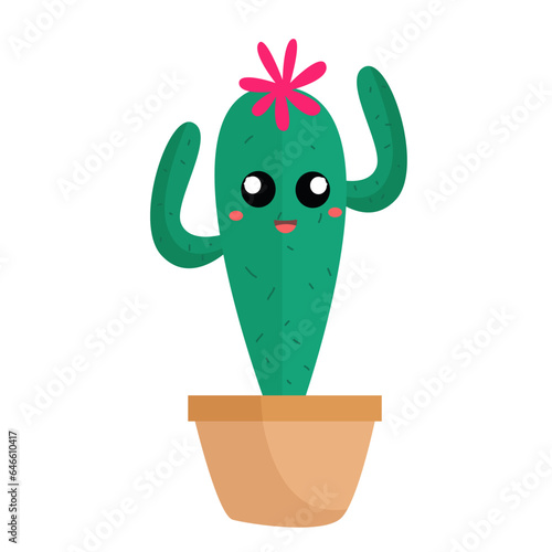 Кактус в векторе. Забавная мультяшная иллюстрация с изображением сочного растения-талисмана. Кактусы в цветочном горшке в очках, изолированные на белом фоне