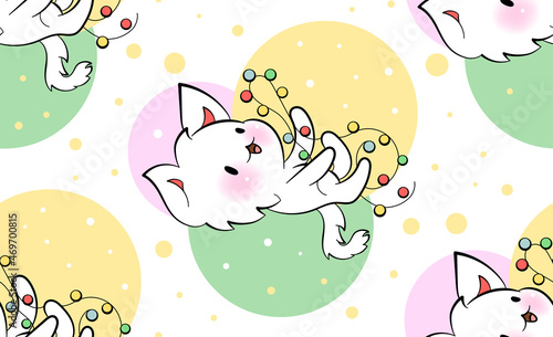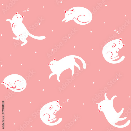 Забавные кошки векторный бесшовный узор. Креативный дизайн для ткани, текстиля, обоев, оберточной бумаги с милыми спящими кошками.