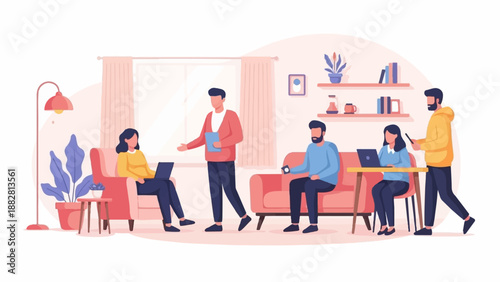 Продвижение продажи в мебельном магазине, векторная плоская иллюстрация. Люди делают покупки в мебельном магазине. Концепция лучших предложений и скидок для плаката, баннера, листовки и т.д.
