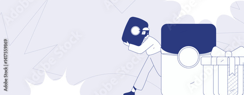 Футуристический значок робота-дроида. Милый векторный персонаж. Технологии и наука будущего