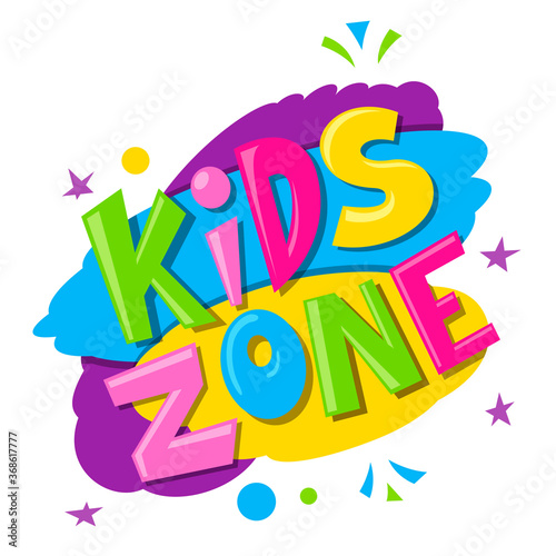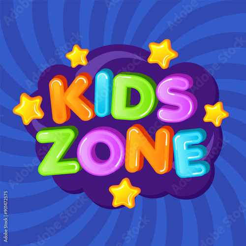 Вектор этикетки игровой зоны. Значок детской комнаты для вечеринок. Детская зона развлечений, наклейка на игровую площадку. Значок места для детского досуга и развлечений. Дизайн мультяшной звезды, выделенный на белом фоне