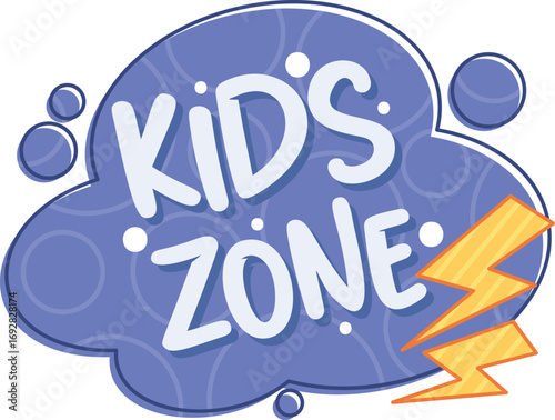Векторная надпись игровой зоны. Значок детской комнаты для вечеринок. Мультяшный дизайн эмблемы детской игровой зоны. Иллюстрация на наклейке для детской площадки, выделенная на белом фоне