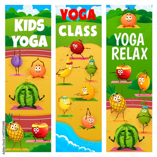 Плакат игровой зоны, рекламирующий место для игр и веселых развлечений в стиле фанк, векторная иллюстрация с изображением симпатичного супергероя из фруктов и овощей