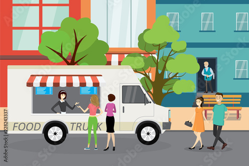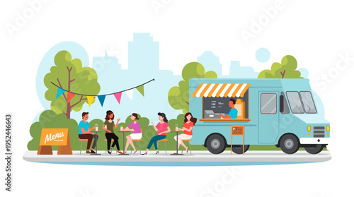 Гаражные распродажи, плоская векторная иллюстрация. Люди покупают подержанную домашнюю мебель, бытовую технику, одежду, музыкальные инструменты, книги, посуду, спортивные товары и т.д. Дворовая распродажа, блошиный рынок.