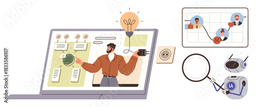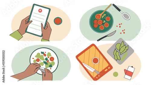 Векторная иллюстрация гаражной распродажи. Блошиный рынок во дворе. Продажа старых ненужных вещей. Женщина-покупательница, выбирающая товары на открытом базаре, выделенная на белом фоне