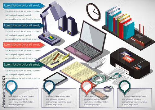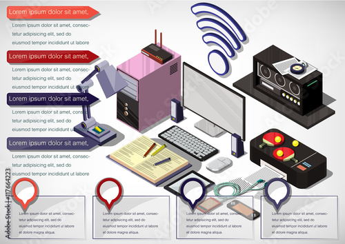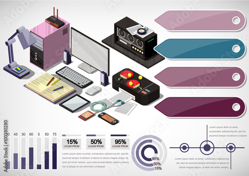 Инфографика по сортировке мусора, векторная иллюстрация. Изометрическая свалка бытовых отходов и зеленые, серые, оранжевые мусорные баки для стеклянного, органического и пластикового мусора соответственно. Разделение отходов.