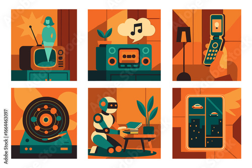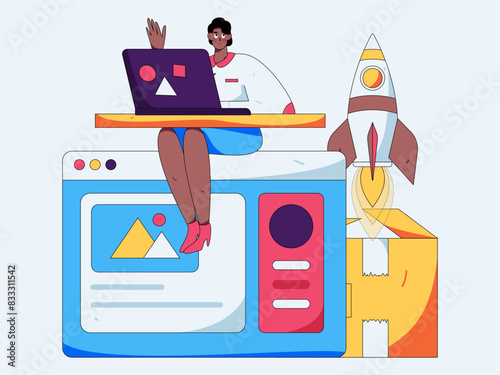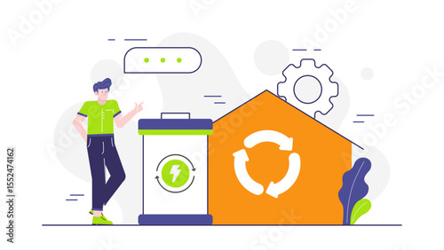 Крошечные люди бросают большую картонную упаковку фаст-фуда, коробку из-под пиццы в огромный коричневый мусорный бак, векторная иллюстрация. Сортировка бумаги и картона для вторичной переработки, экологическая концепция для веб-баннера, страницы веб-сайта и т.д.