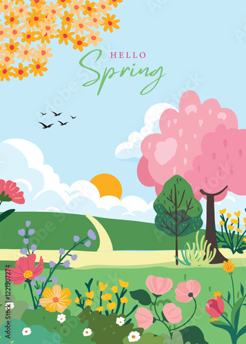 Садовый векторный плакат с персонажами-людьми, занимающимися садоводством, выращиванием и уходом за растениями. Иллюстрация садовника с типографскими буквами. Сезонные работы по поливу, посадке, сгребанию, стрижке