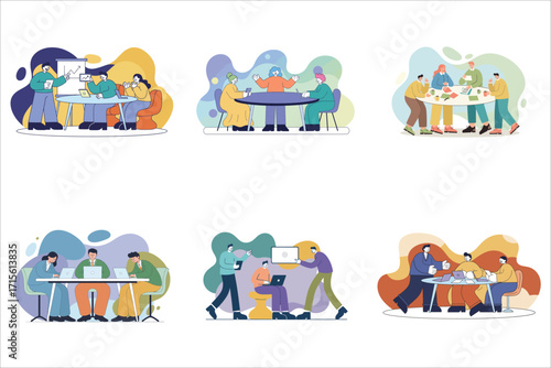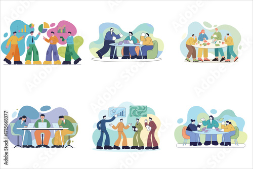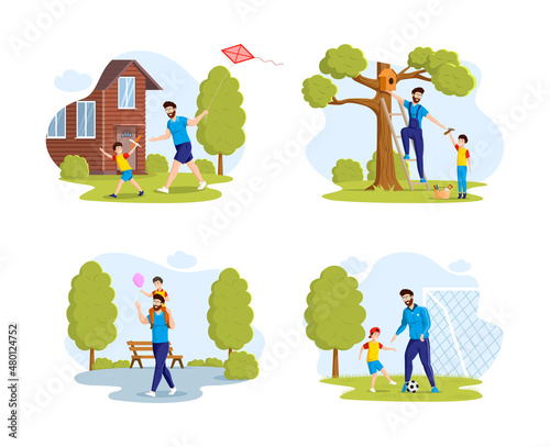 Садовники, работающие в садовой сцене, плоская векторная иллюстрация. Люди собирают яблоки, подстригают траву, подрезают, поливают деревья, сажают рассаду. Садоводство. Услуги по уходу за садом и техническому обслуживанию.