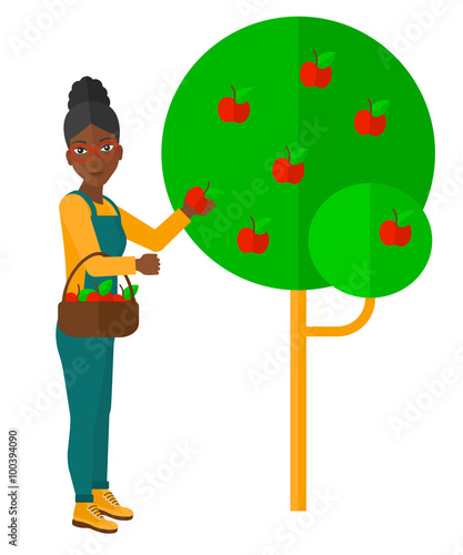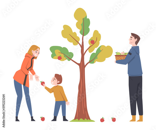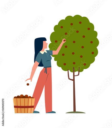 Садовники мужчины и женщины, работающие в саду, векторная плоская изолированная иллюстрация. Люди сажают, выращивают рассаду, собирают урожай с помощью садовых инструментов - лопаты, лейки, тачки. Концепция садоводства.