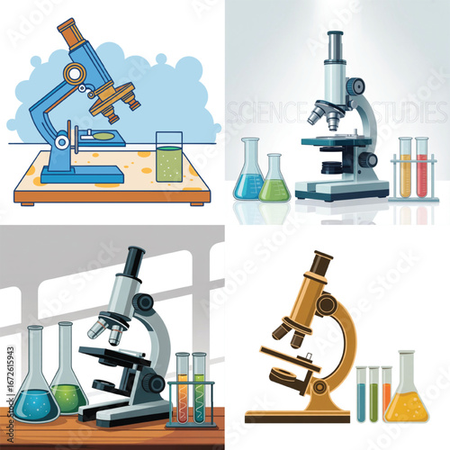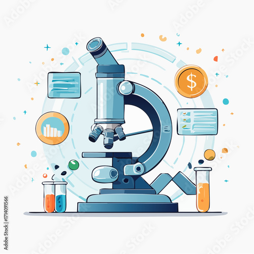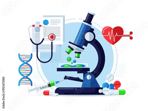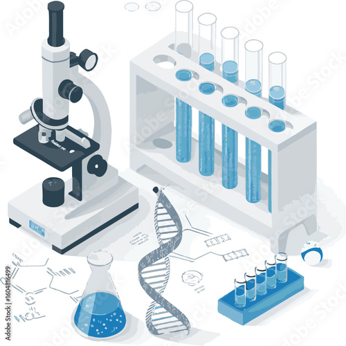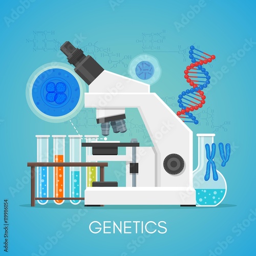 Векторный плакат концепции образования в области генетики в плоском стиле. Школьное лабораторное оборудование по биологии.