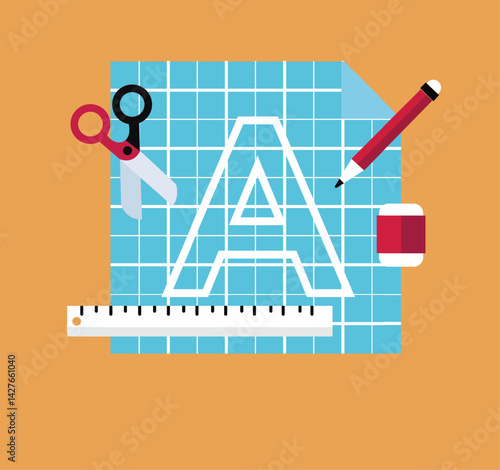 Векторный плакат концепции геометрического научного образования в плоском стиле. Геометрические и математические символы на школьной доске.