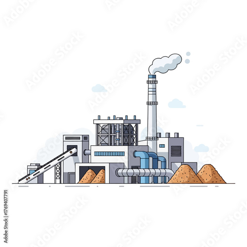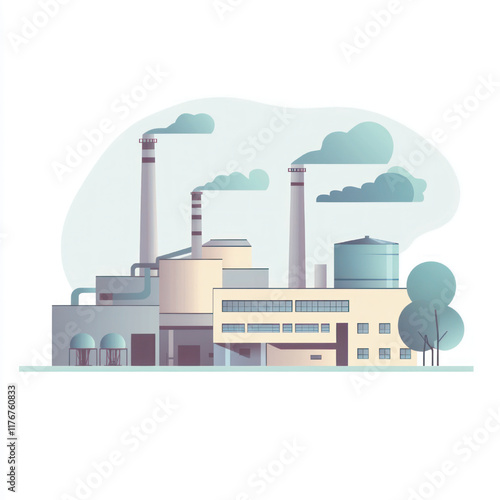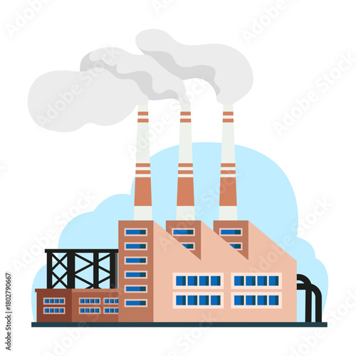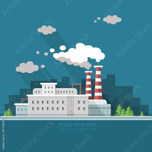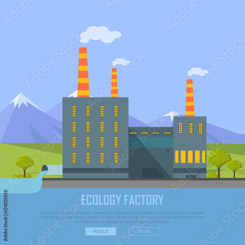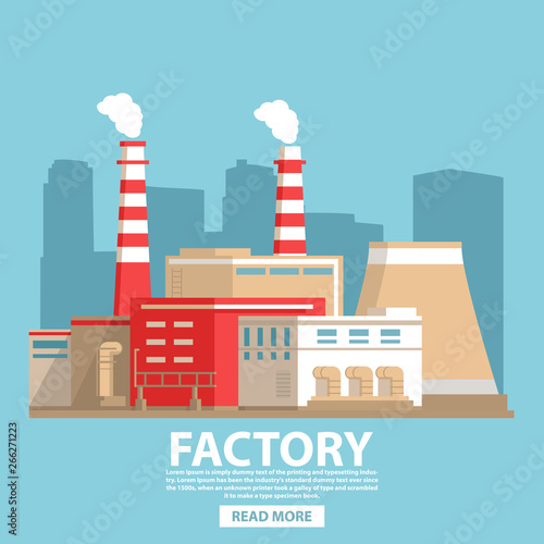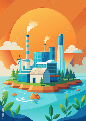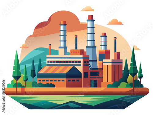 Геотермальная электростанция и завод. Промышленная концепция геотермальной энергии. Векторная иллюстрация в плоском стиле. Фон геотермальной станции. Возобновляемые источники энергии.