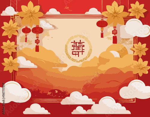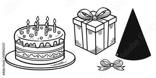 Подарочная коробка с лентой и бантом на подиуме, вырезанный из бумаги самолет, воздушные шары, пролетающие над силуэтами всемирно известных достопримечательностей, векторная иллюстрация. Программа лояльности Travel bonus.