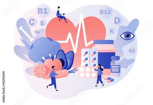 Микро-персонажи, держащие огромную подарочную карту с розовой лентой и бантом, векторная иллюстрация дизайна в плоском стиле. Дисконтная подарочная карта, ваучер, инструмент маркетинговой стратегии сертификата.