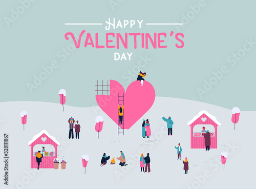 Подарок заглавными буквами, счастливые люди мужского и женского пола с подарочными коробками, воздушными шарами, поппером для вечеринок, векторная иллюстрация дизайна в плоском стиле. Празднование вечеринки.