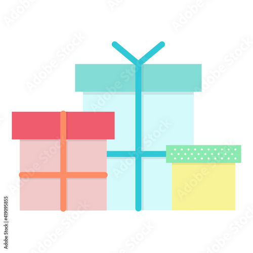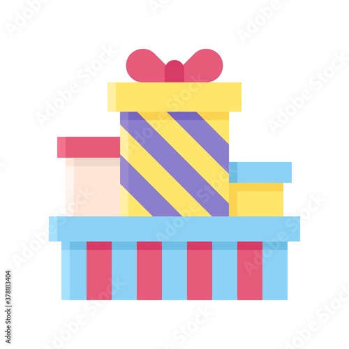 Вектор подарочной стопки на Рождество. Стопка подарочных коробок для иллюстрации плоского значка на день рождения. Изолированная мультяшная праздничная подарочная коробка на белом фоне. Празднование дня рождения ребенка