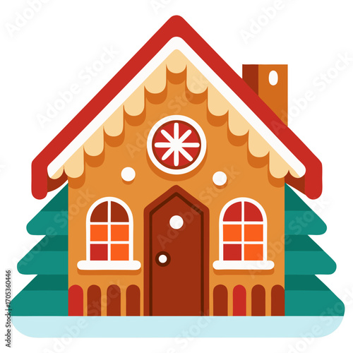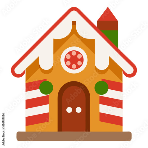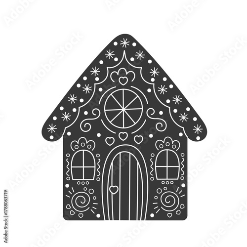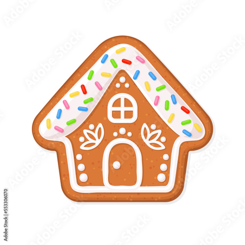 Вектор пряничного домика. Значок рождественского имбирного домашнего печенья. Сладкое печенье для зимних праздников с сахарной глазурью. Домашняя выпечка на белом фоне