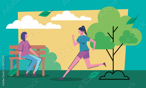 Девушка за компьютером посреди озера в природной среде. Удаленная работа и самоизоляция векторная иллюстрация. Бизнес-офис вдали от дома и города. Женщина с ноутбуком плывет на плоту.
