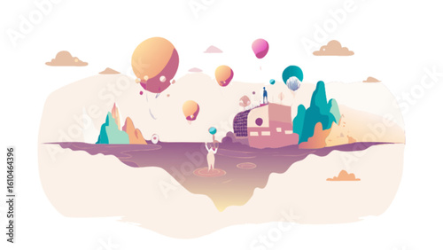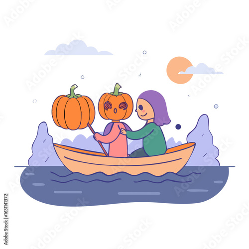 Девушка приносит спящую собаку к себе в постель. Концепция домашнего питомца векторная иллюстрация. Женщина путешествует на лодке со своим щенком.
