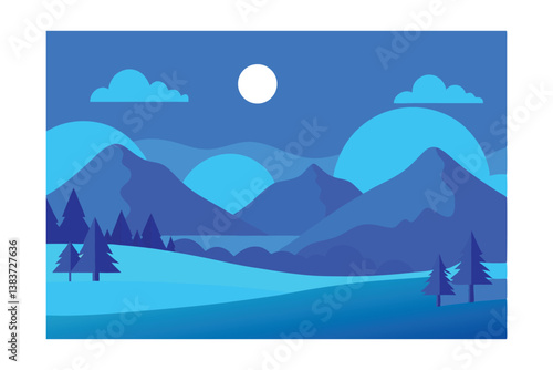 Красивая девушка с длинными голубыми волосами, обнимающая горы, лесные деревья, силуэты диких животных, векторная иллюстрация в стиле бумажного искусства. Охрана природы, сохранение окружающей среды. Живите в гармонии с природой.