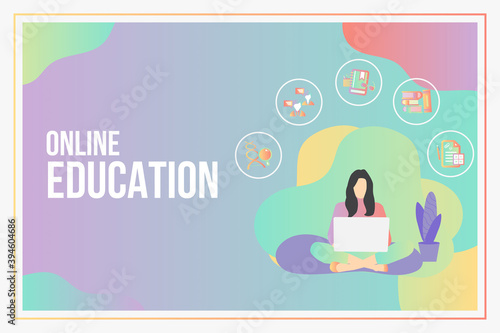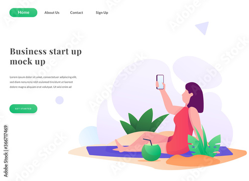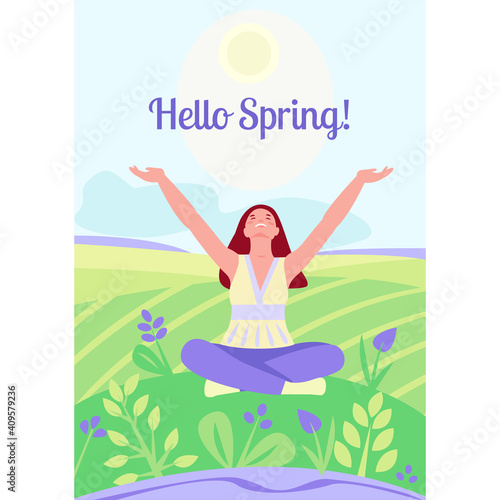 Девушка слушает музыку в наушниках и медитирует дома. Женщина поставила цветы в вазу. Иллюстрация концепции хобби и досуга. Векторный шаблон дизайна веб-сайта. Иллюстрация сайта целевой страницы.