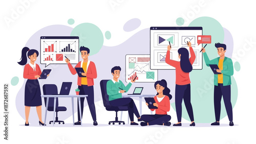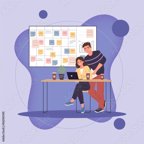 Гигантский смартфон, крошечные персонажи шеф-повар с сумкой для еды, курьер с сумкой для доставки, девушка, делающая заказ с помощью мобильного телефона, плоская векторная иллюстрация. Онлайн-заказ и доставка. Приложение для отслеживания онлайн-покупок.