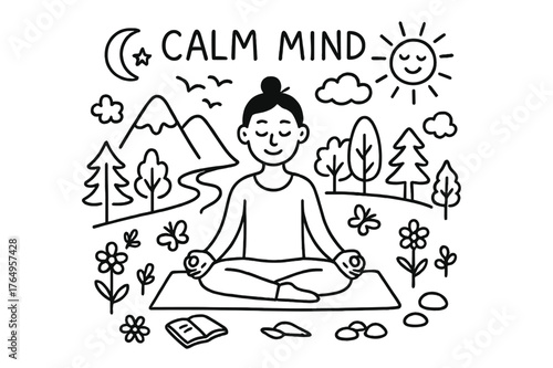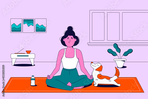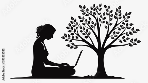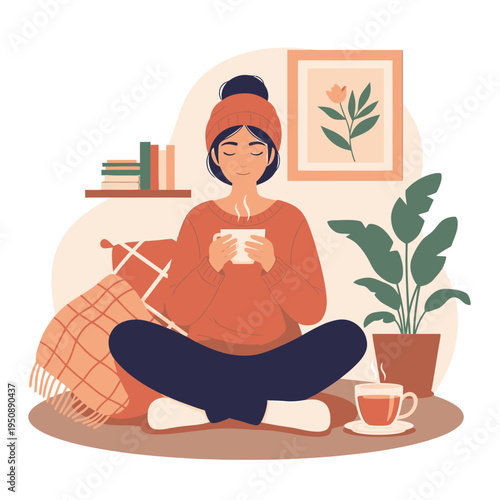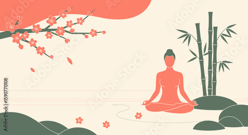 Молодая девушка подстригает дерево бонсай. Векторная иллюстрация в плоском стиле. Садоводство, уход за растениями бонсай, элемент дизайна концепции хобби.