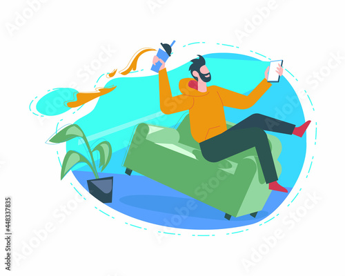 Девушка наблюдает за звездами в ночном небе с помощью телескопа. Иллюстрация векторной концепции звездопада и астрономии. Пикник со звездным ночным небом и телескопом. Шаблон дизайна веб-сайта.