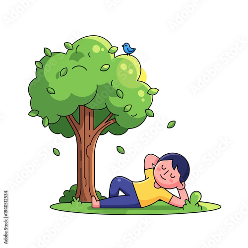Векторная иллюстрация молодой девушки, использующей ноутбук, лежа на зеленой траве в городском парке. Дизайн в плоском стиле.