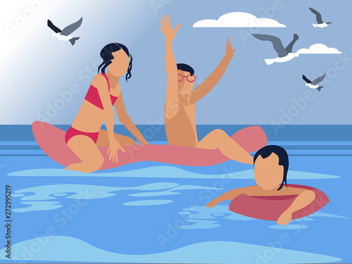 Девушки, купающиеся в горячем источнике, векторный значок, изолированный на белом фоне