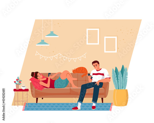 Девушки, отдыхающие дома, плоская векторная иллюстрация. Молодые женщины читают книгу, практикуют йогу, медитируют. Домашняя йога, фитнес, ароматерапия, медитация при свечах.