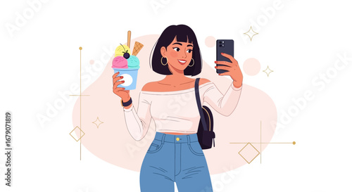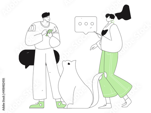Мобильный телефон, пузырьки чата с девушками, отправляющими сообщения, плоская векторная иллюстрация. Онлайн-разговор между двумя подругами с помощью мобильного приложения для обмена сообщениями. Онлайн-общение.