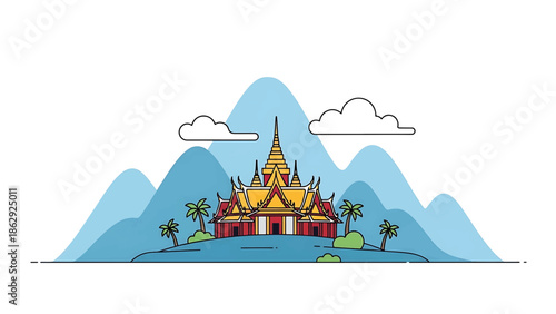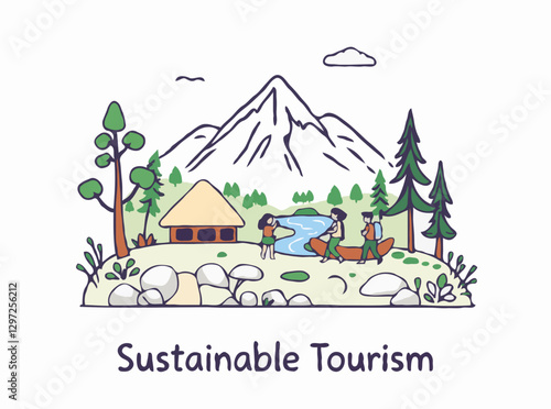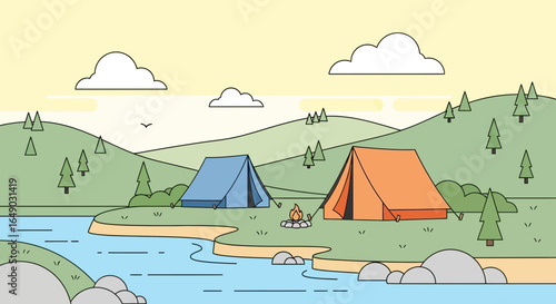 Вектор глэмп-палатки. Иллюстрация роскошного эко-лагеря. Поездка в горы, отдых в кемпинге на природе. Пикник на открытом воздухе и приключение в отпуске. Романтический туризм
