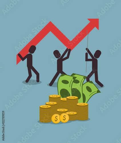 Золотые слитки, денежные банкноты и долларовые монеты. Векторная иллюстрация концепции деловых и финансовых рынков в плоском дизайне.
