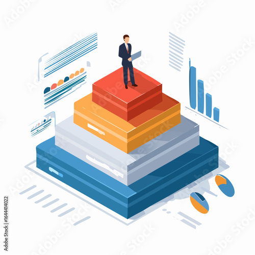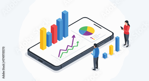 Золотые слитки, увеличивающиеся графики, плоская векторная изометрическая иллюстрация. Концепция роста цен на золото.