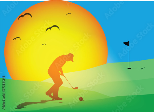 Игрок в гольф, стоящий в позе качели, векторная иллюстрация дизайна в плоском стиле. Концепция спорта и отдыха для веб-баннера, страницы веб-сайта и т.д.