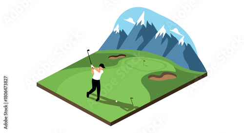 Игра в гольф. Игрок в гольф, размахивающий клюшкой для гольфа, векторная иллюстрация в стиле бумажного искусства. Мужчина играет в спортивную игру гольф.