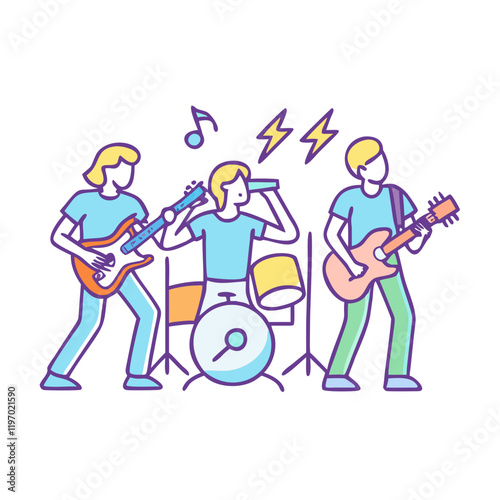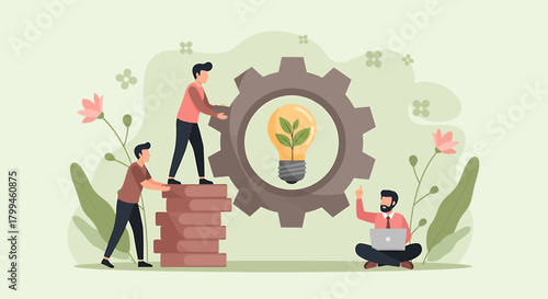 Векторная иллюстрация концепции уличного искусства. Крошечные персонажи граффити с огромными инструментами для рисования распылителем и аксессуарами, такими как баллончик с краской, банки, маркеры, маска и ретро-диктофон babin.