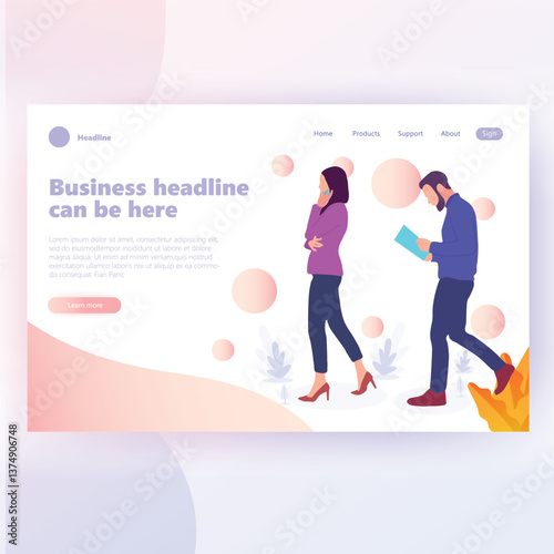 Векторный шаблон веб-сайта для торжественного открытия, дизайн веб-страницы и целевой страницы для разработки веб-сайтов и мобильных сайтов. Церемония открытия ресторана, магазина, бутика или другого бизнеса с участием персонажей.