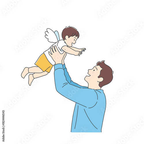 Дедушка держит внука на плечах векторная иконка, изолированная на белом фоне