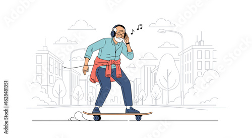 Счастливый дедушка, гуляющий с внуком и любимой собакой в парке, плоская векторная иллюстрация. Дедушка с внуком проводят время вместе. Отношения между бабушкой и внуком. Семейный отдых на свежем воздухе.