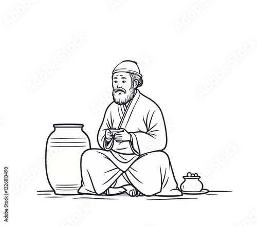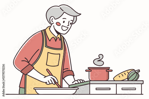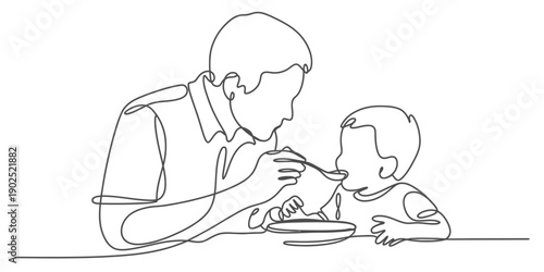 Бабушка кормит младенца-внука векторной иконкой, изолированной на белом фоне