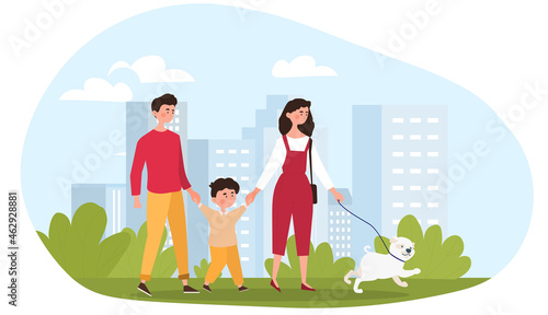 Счастливая бабушка бегает трусцой с внучкой в парке, плоская векторная иллюстрация. Бабушка и внук проводят время вместе. Отношения между бабушкой и внуком. Семейный отдых на свежем воздухе.