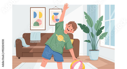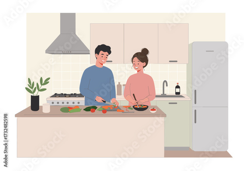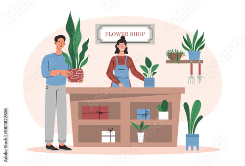 Внук помогает своей бабушке по хозяйству, плоская векторная иллюстрация. Счастливые бабушка и внук проводят время вместе, занимаясь домашними делами. Отношения между бабушкой, дедушкой и внуком.