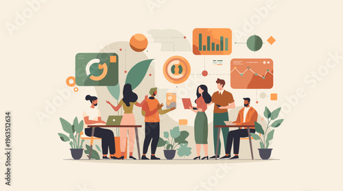 Деловые люди заключают сделку с помощью планшета и настольного компьютера, векторная плоская иллюстрация. Цифровое деловое соглашение, выгодная сделка, онлайн-общение, поднятый вверх большой палец для одобрения.