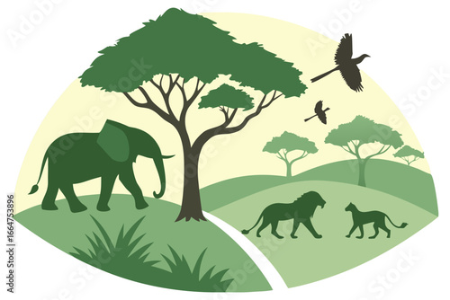 Зеленые силуэты динозавров. Динозавры юрского периода, дикие животные, векторная иллюстрация. Стегозавр, бронтозавр, тираннозавр рекс, велоцираптор, паразавролофус, спинозавр, брахиозавр, трицератопс, птеранодон
